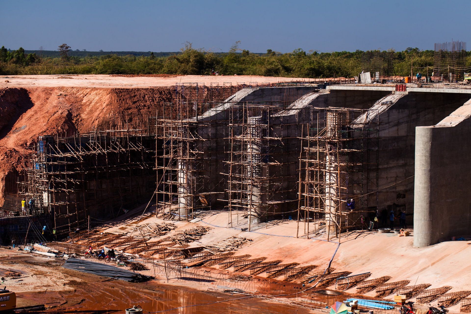 The dam cleaning process begins with a detailed inspection to identify problems like sediment accumulation, debris or overgrown vegetation that restrict water capacity. Heavy machinery removes silt and debris, while vegetation management helps prevent erosion and root-related damage.